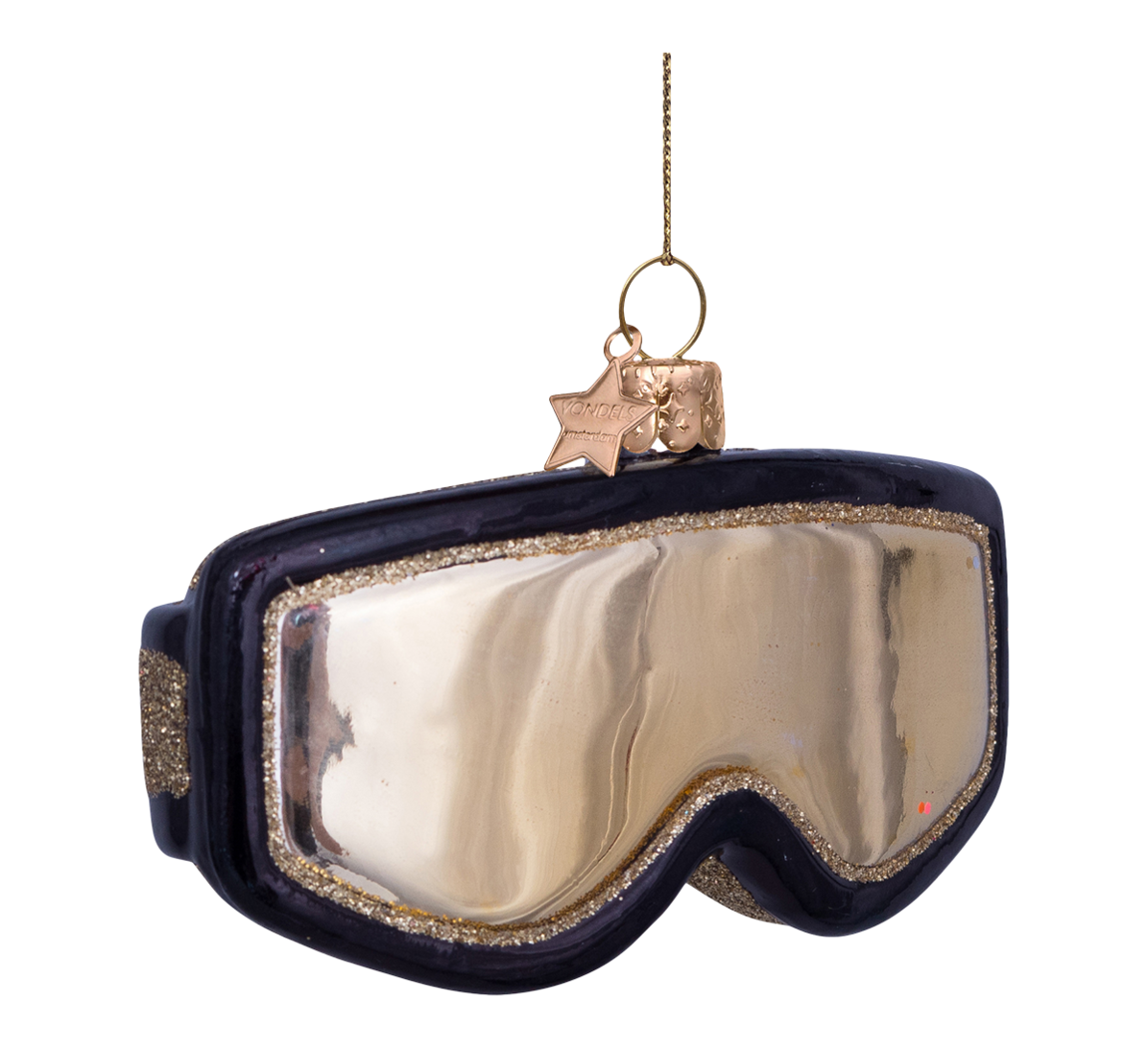 Glassornament skibriller sort gull 5 cm