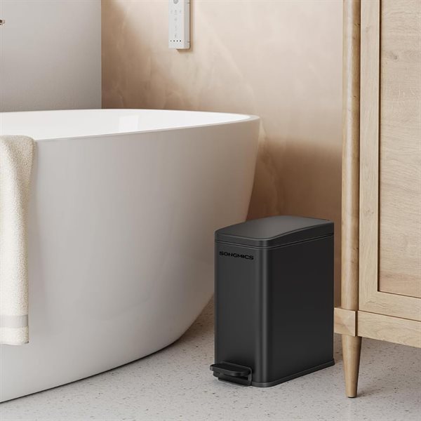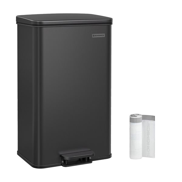 Svart søppelbøtte