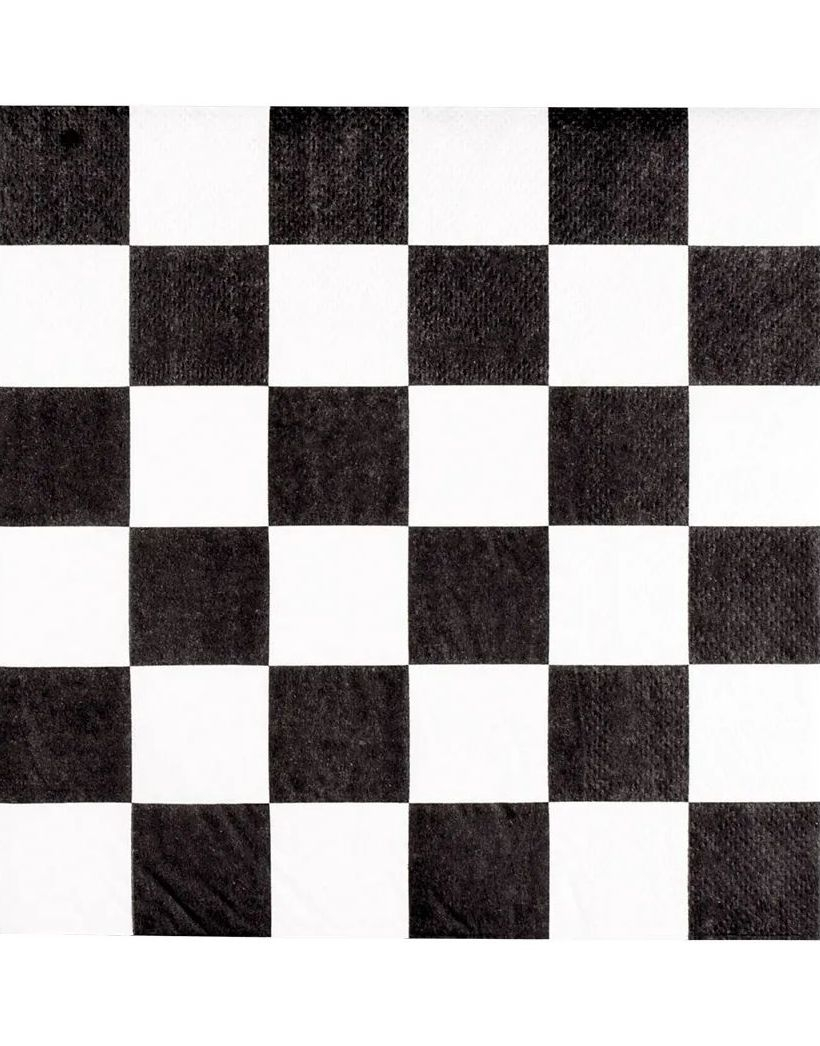 20 stk Rutete Svart og Hvit Racing Servietter 3-Lags 33x33 cm