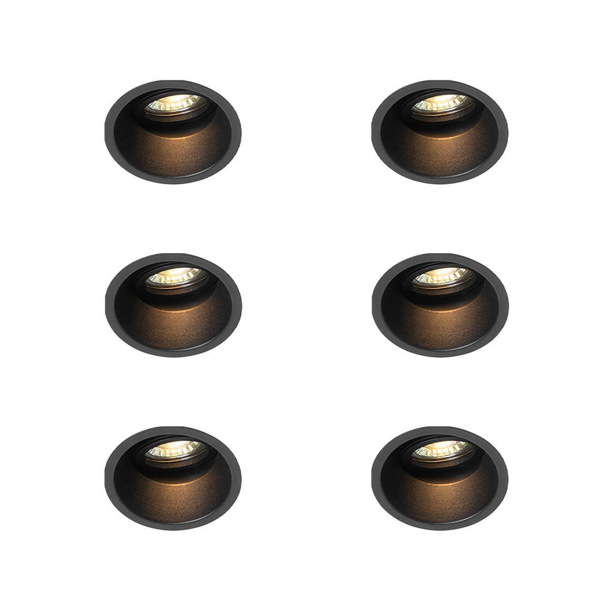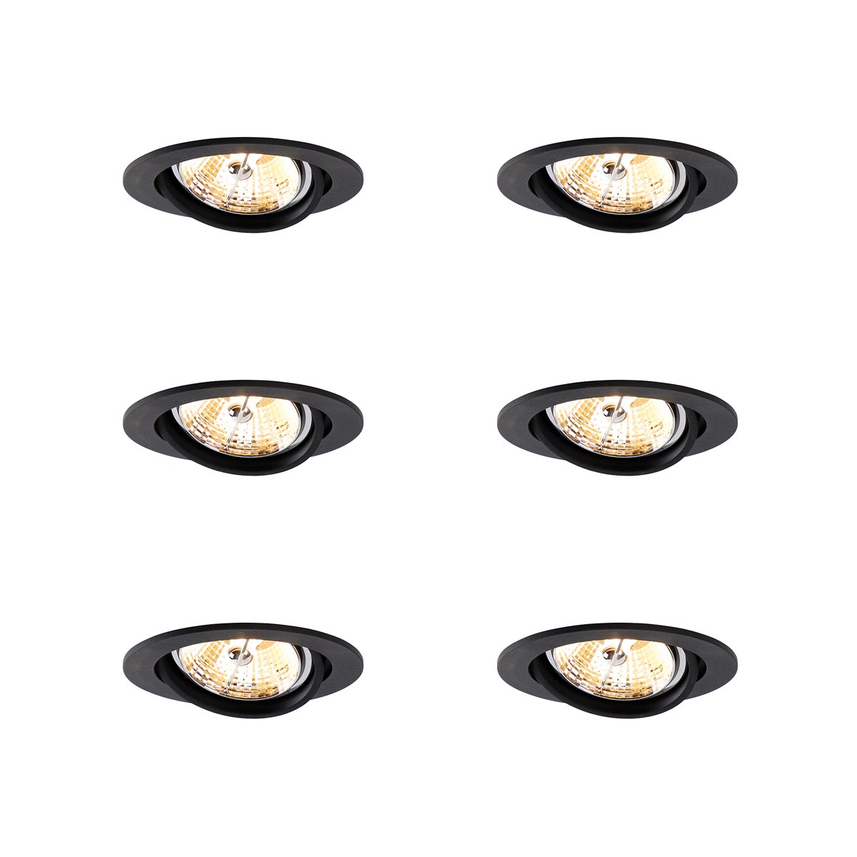 Sett med 6 moderne, svarte, roterbare og vippbare innfelte spotter - Alloy