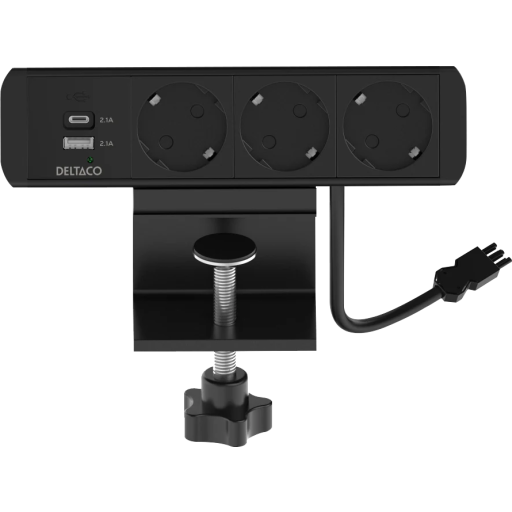 Deltaco bordkontakt, 3 stikkontakter, A+C USB-lader, svart