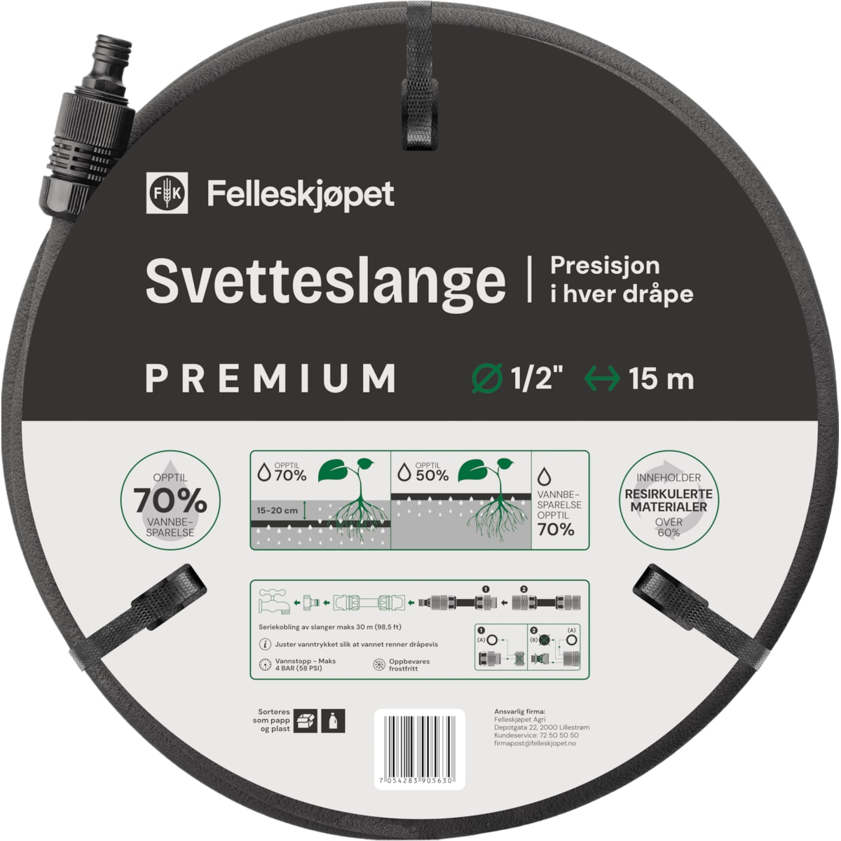 Norgarden Svetteslange med koblinger 15 meter