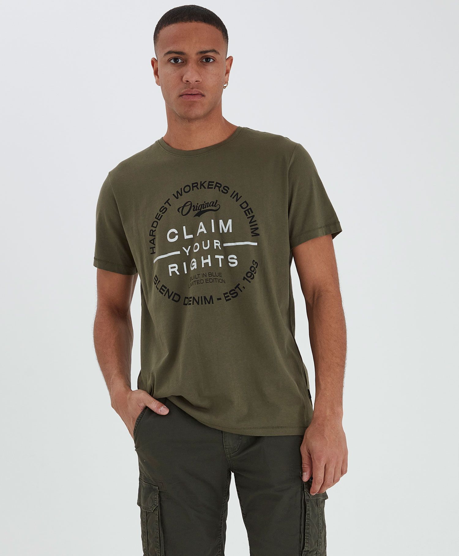 Blend T-shirt R print Olivengrønn L