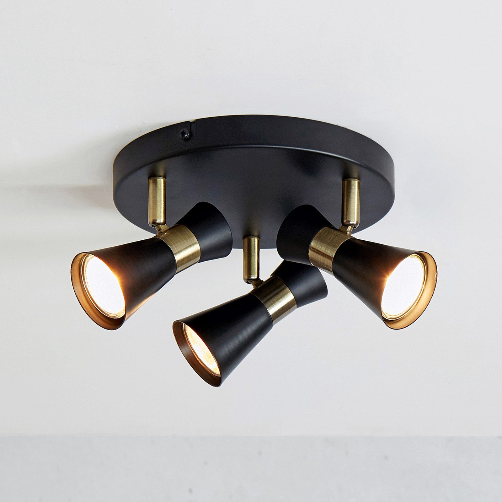 Markslöjd Folie taklampe, 3 lyskilder, svart/messing - Stue