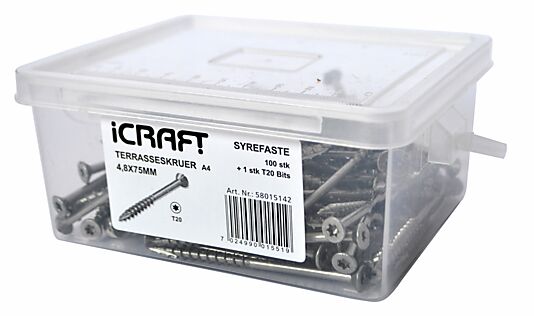 Icraft terrasseskruer a4 4,8x75mm 100stk