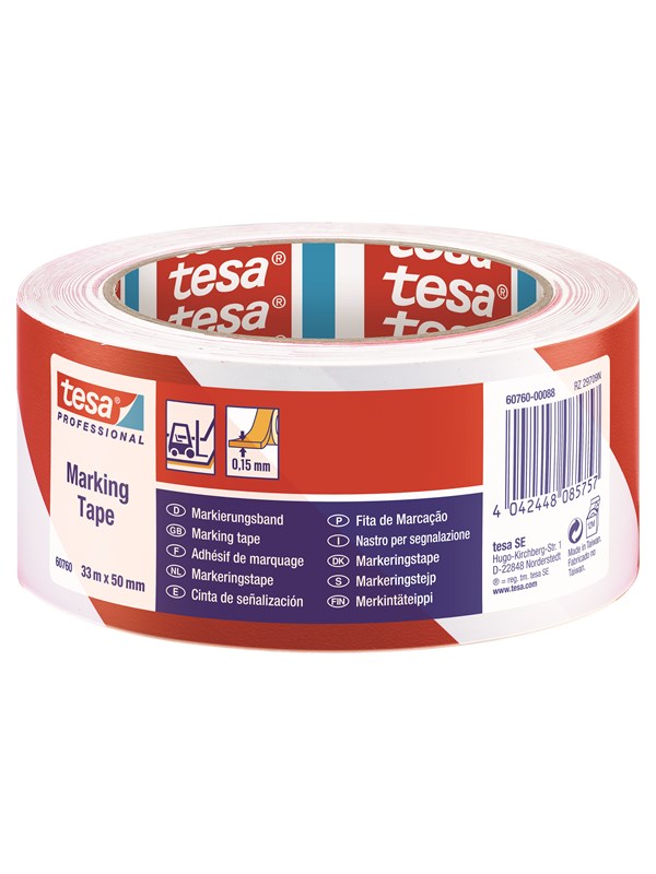 Tape TESA Prem PVC gulv/varsel rød/hvit