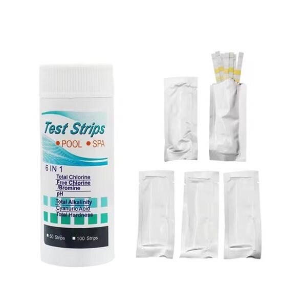 6-i-1 teststrimler for pH, klor, brom og alkalinitet - 50 stk