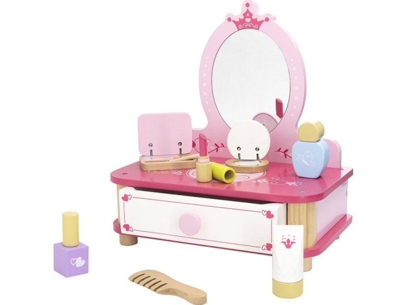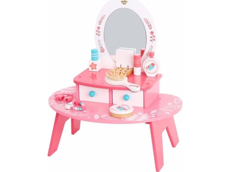 Viga Toys Rosa Toalettbord I Tre Til Sminke Med Speil + Tilbehør
