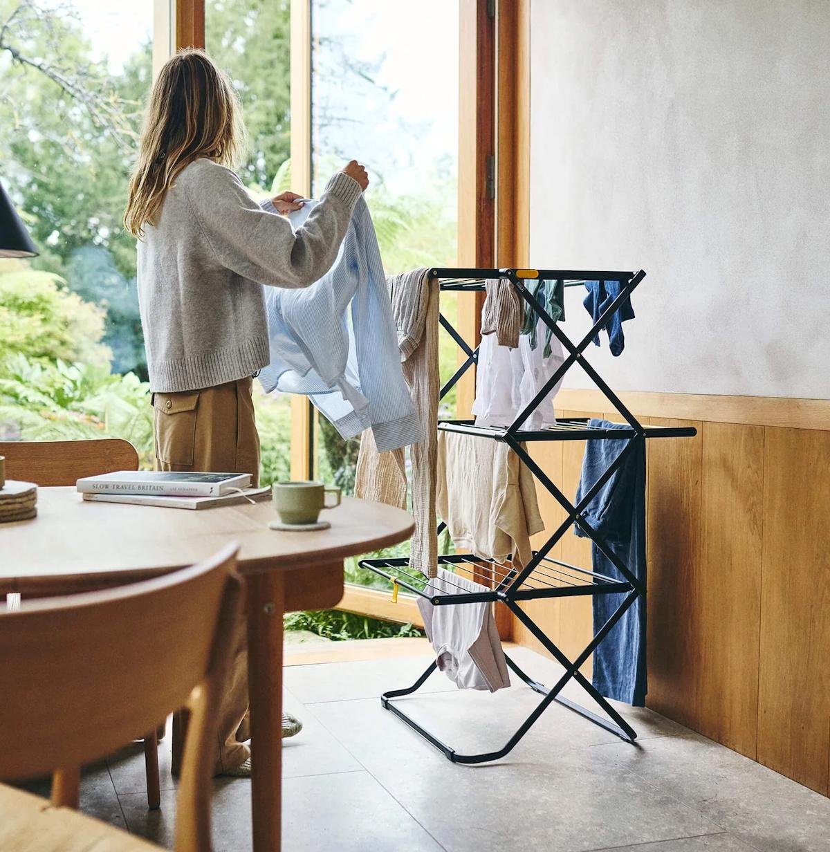 Lite tørkestativ for bruk ute og inne, svart