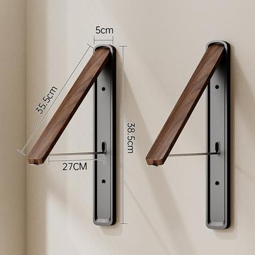 Veggmontert klesstativ / tørkestativ i aluminium - sammenleggbart, 2 skjøter - svart
