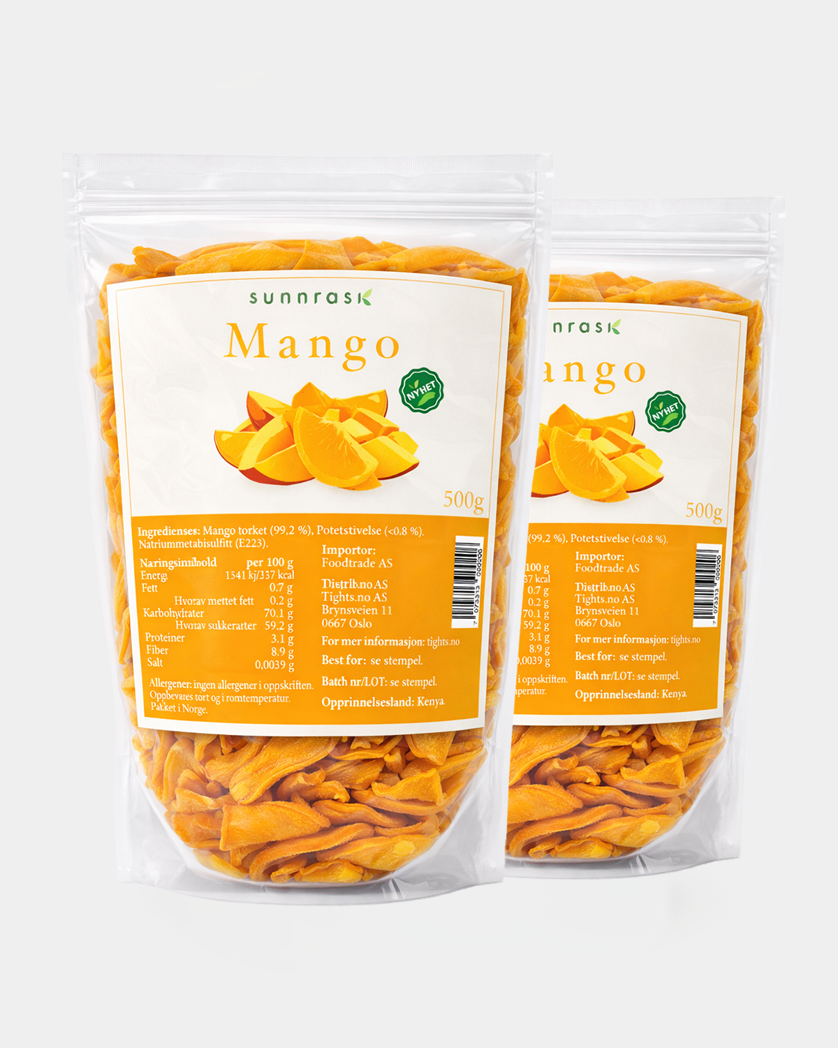 Sunnrask Tørket Mango 2x500g Ikke tilsatt sukker