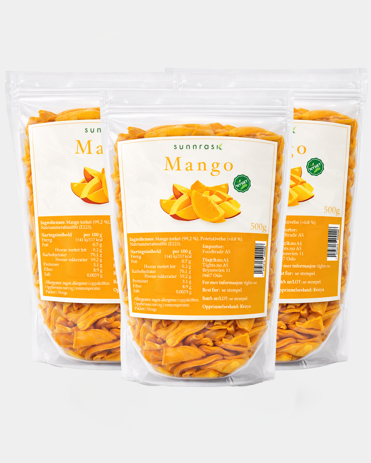 Sunnrask Tørket Mango 3x500g Ikke tilsatt sukker