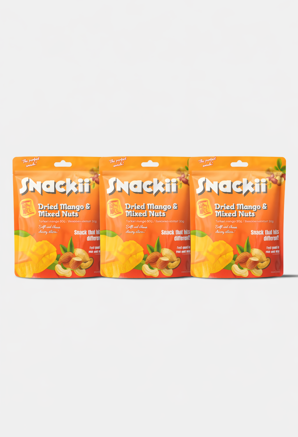 Rawnice Tørket mango & blandet nøtter 3pack 80g