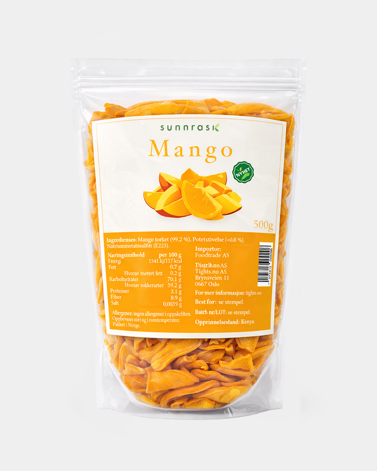 Sunnrask Tørket Mango 500g Ikke tilsatt sukker