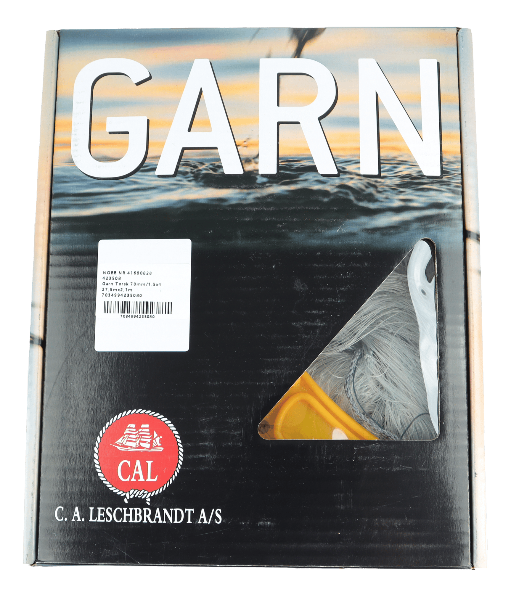 CAL Torskegarn - 1,5 mm x4 - Grå - 27,5x2,1 meter - 70 mm