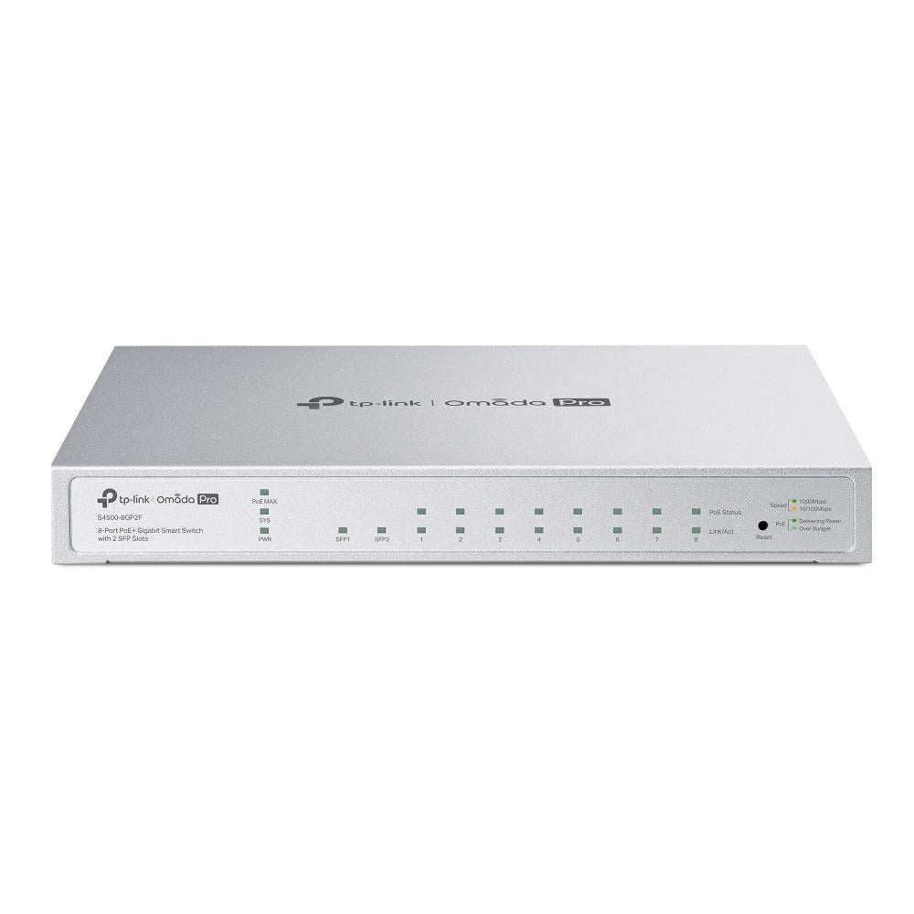TP-Link Omada Pro 8-Port PoE+ Gigabit Smart Switch with 2 SFP Slots 61W PoE Budget: 8Ã 802.3at/af-compliant PoE+ ports with a total power supply of