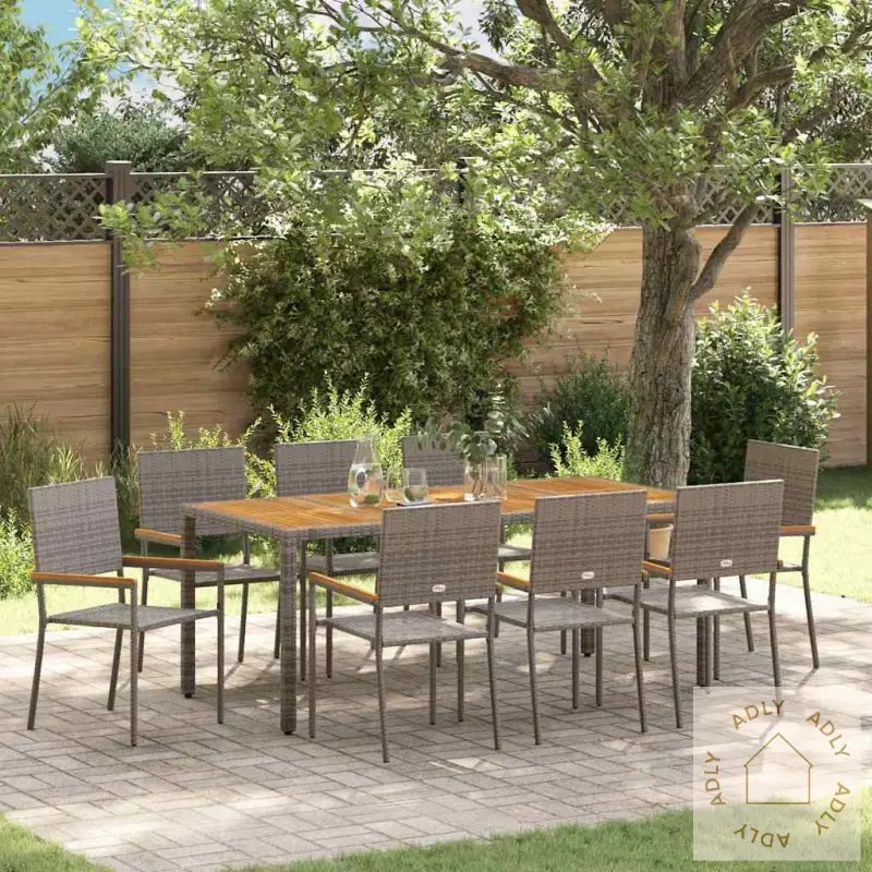 Hagemøbler spisebordsett i grå poly rattan med treplate