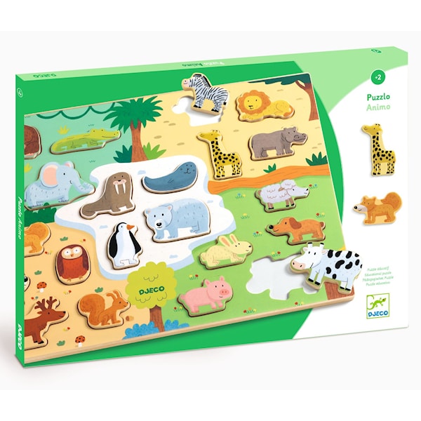 Trepuslespill på Plate 22 Biter Motiv med Ulike Dyr Djeco