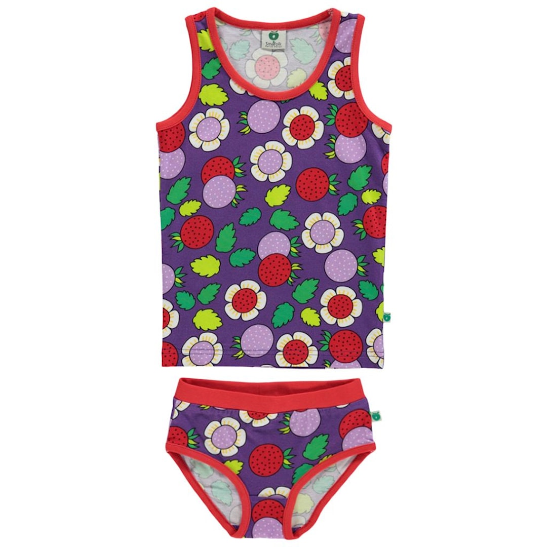 Småfolk Mønstret Undertøysett Med Jordbær Purple Heart 1-2 Y Lilla 1-2 år kvinne