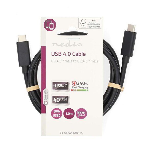 NÖRDIC 3m USB4 USB-C till C nylonflätad kabel PD3.1 240W 40G 8K60Hz 4K144Hz