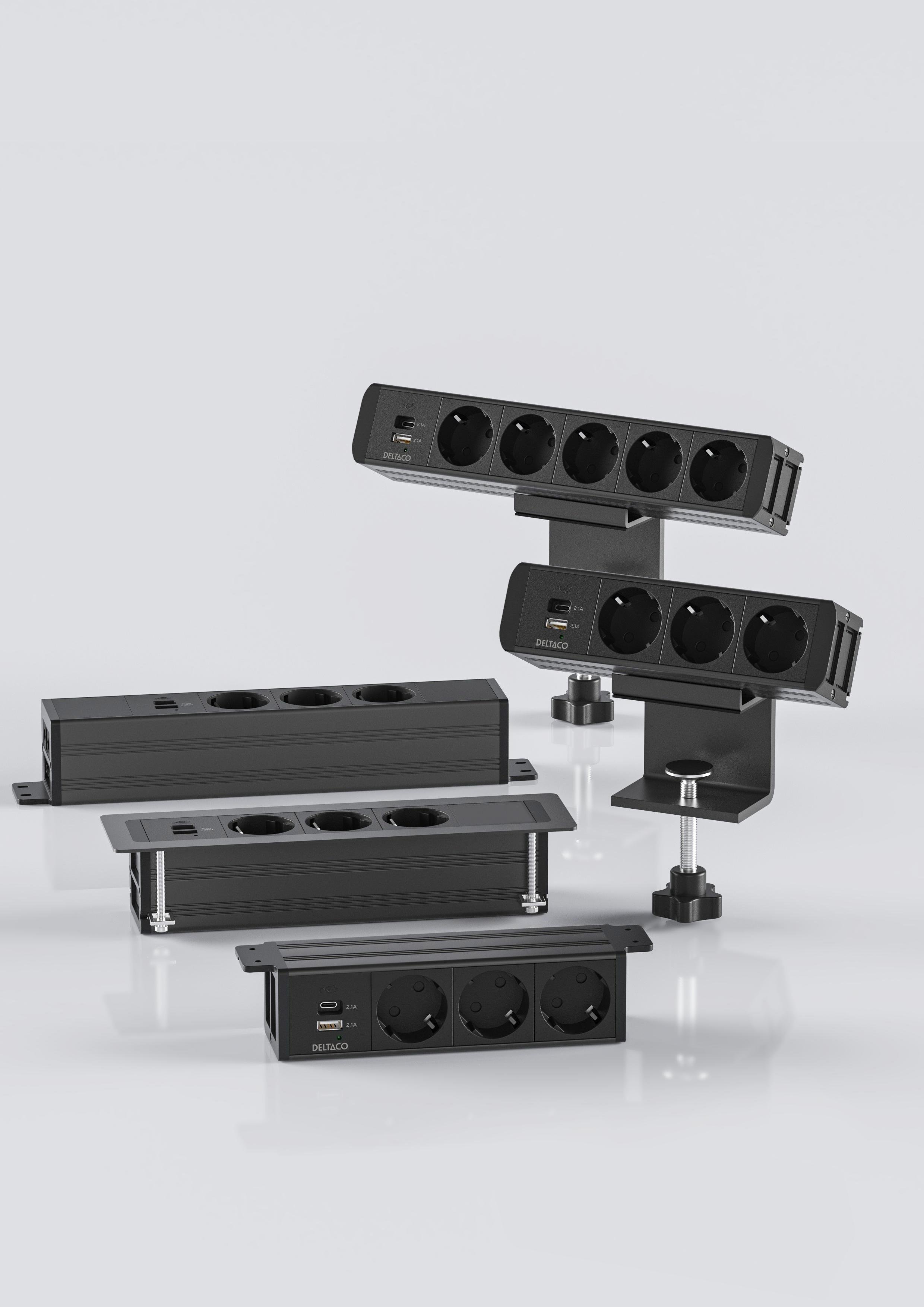 Deltaco OFFICE Under-desk Outlet 3 outlets 1x21W A+C USB GST18 caps