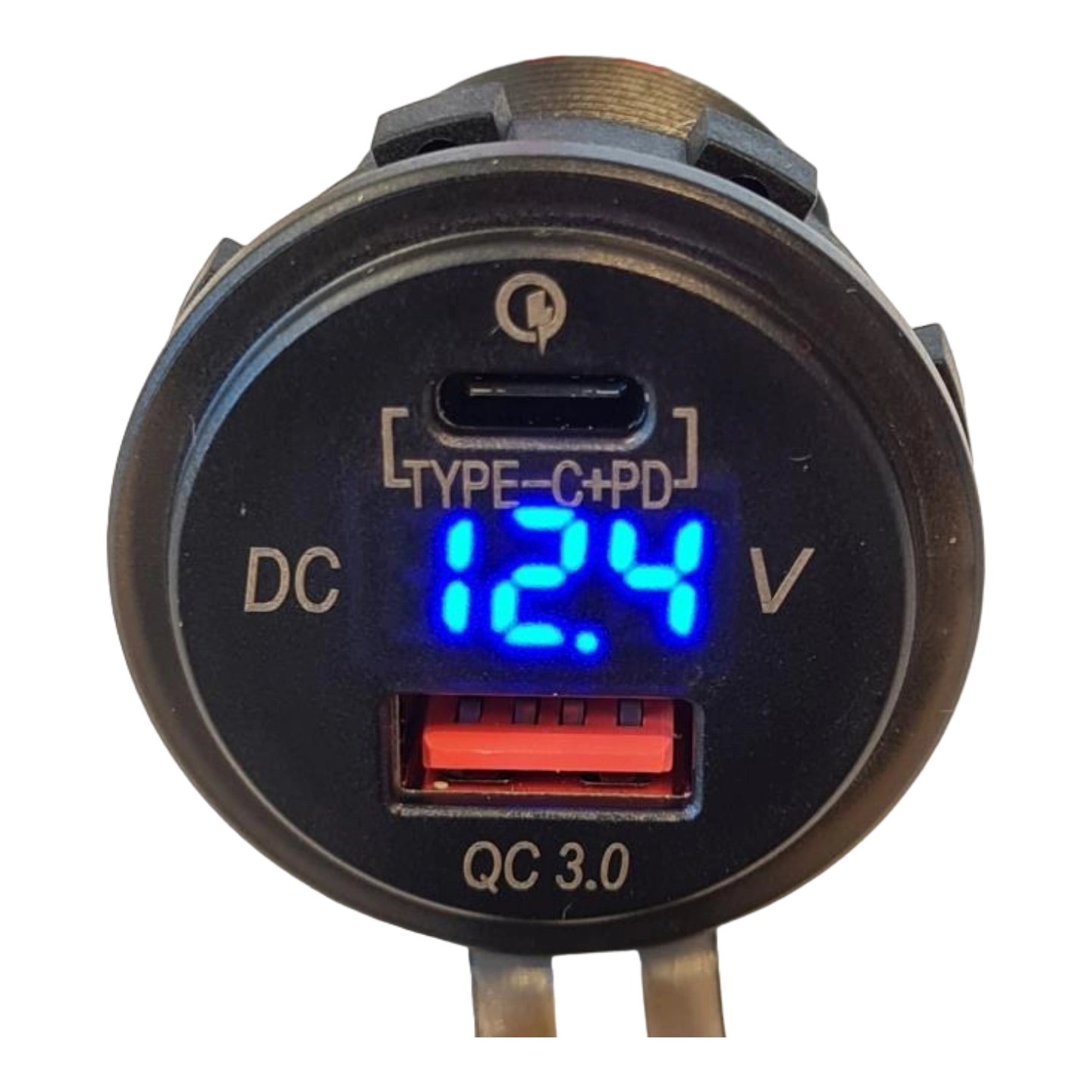 POLARPLUS USB Uttak A+C Hurtiglader 12V Ø37mm - Voltmeter m/ av/på knapp