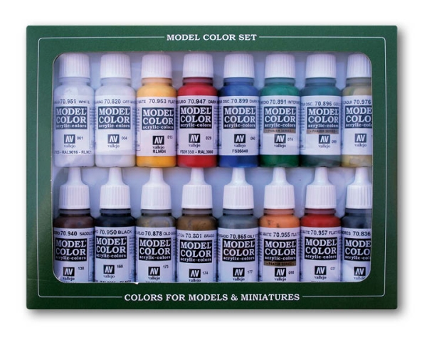 Vallejo 71.178, Sort, Blå, Brun, Grønn, Ochre, Oliven, Rød, Hvit, Gult, Acryl Maling, Væske, 17 Ml, 16 Stykker