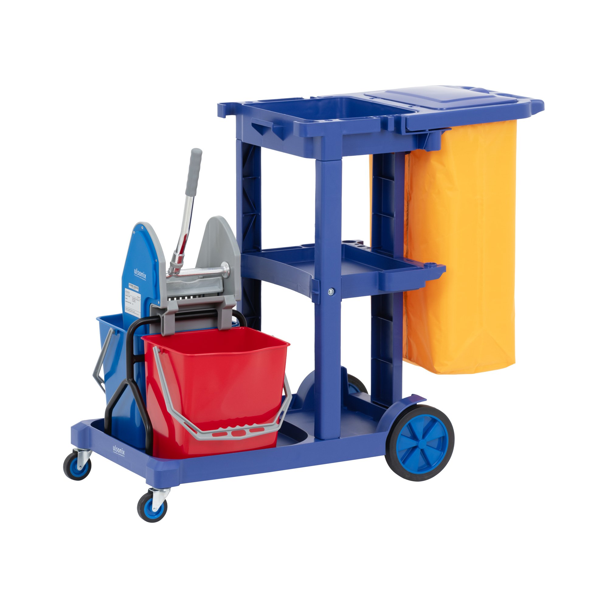 ulsonix Rengjøringsvogn - med 2 bøtter, presse og vaskepose 3 hyller opptil 200 kg
