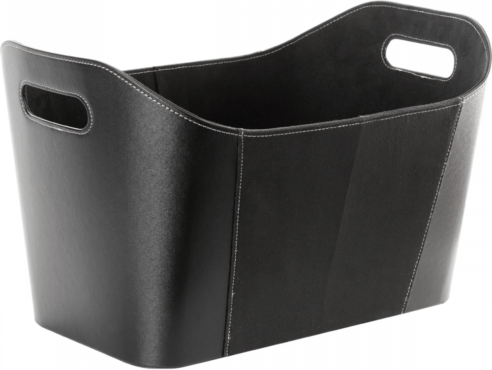 Vedkurv i svart imitert skinn