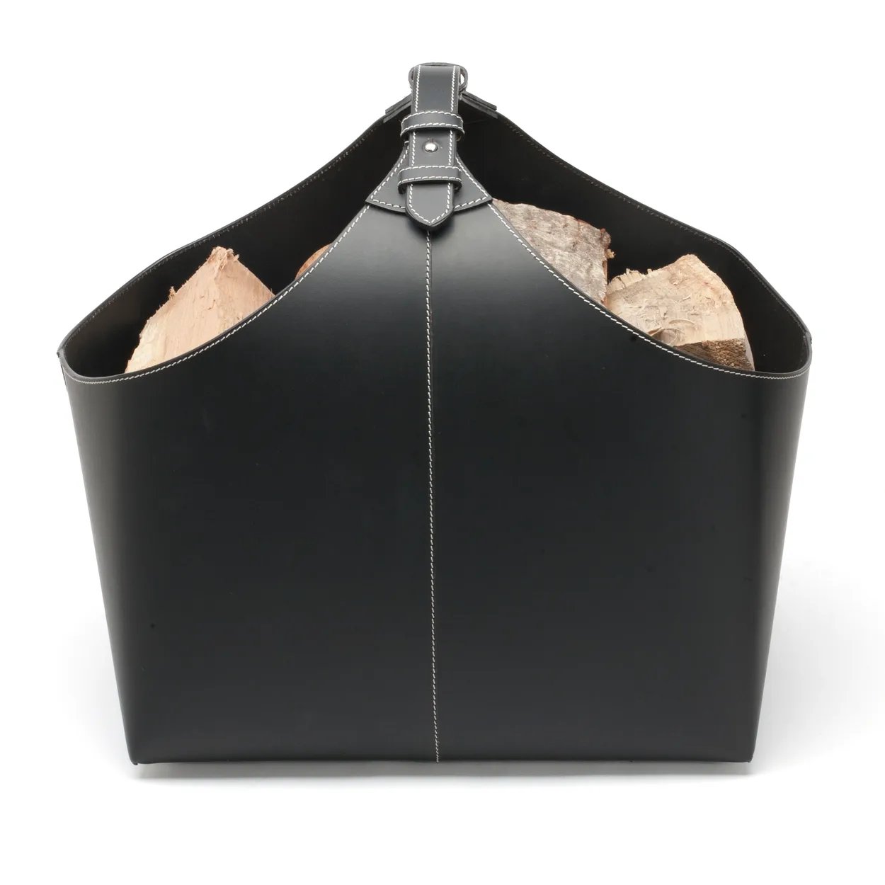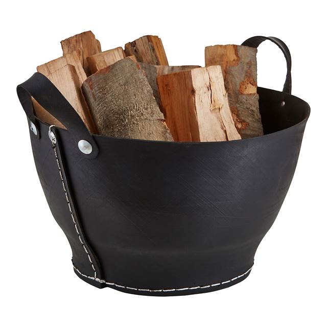 Rund vedkurv - svart med dekorative sømmer