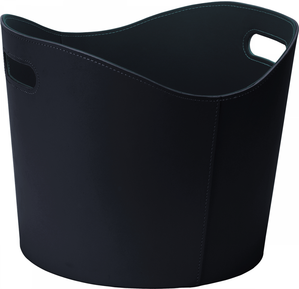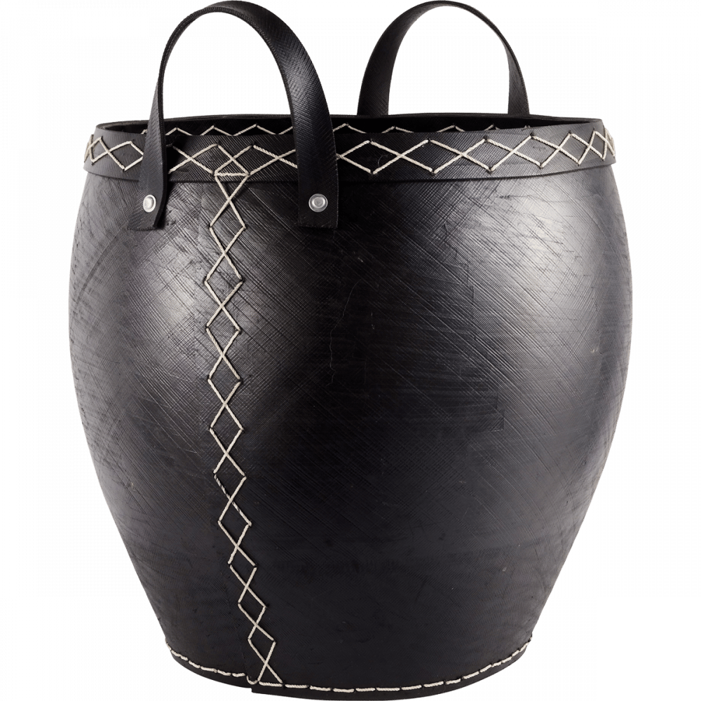 Rund vedkurv i svart imitert skinn