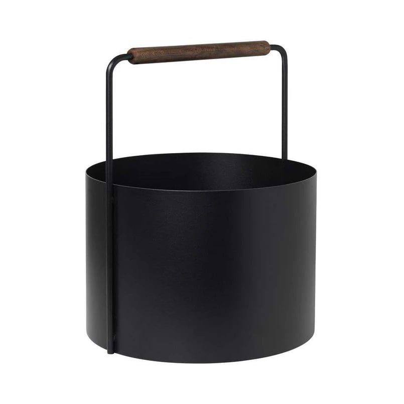 Vedkurv sort med håndtak