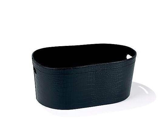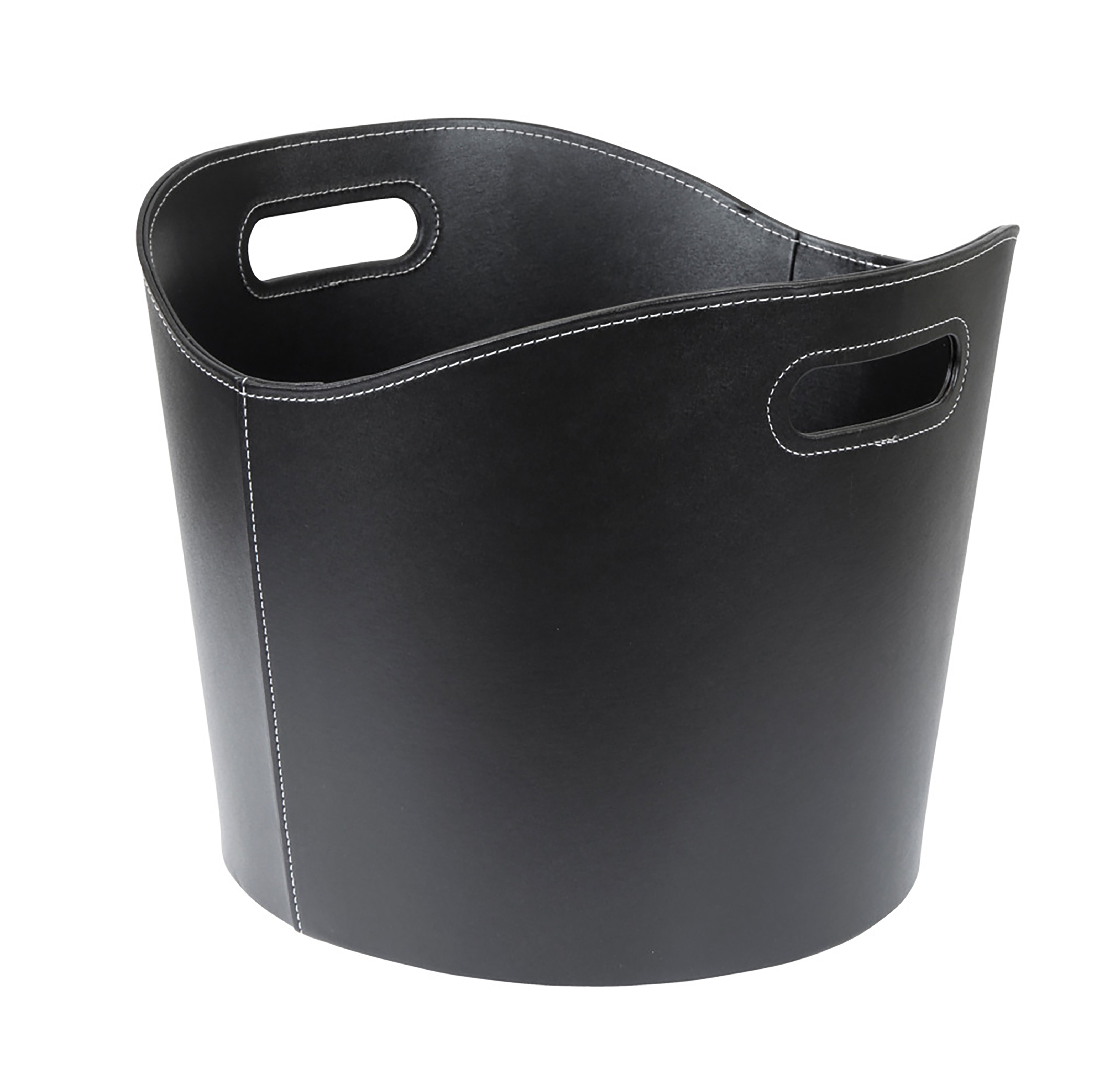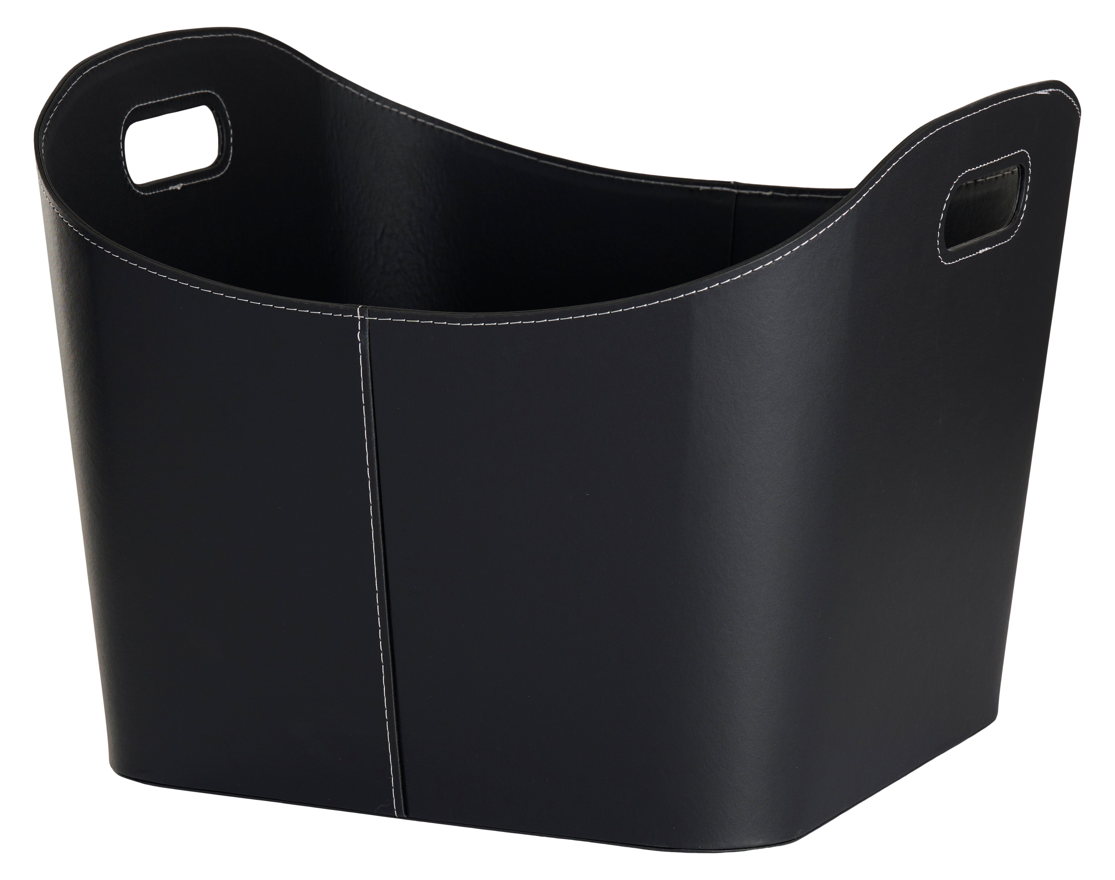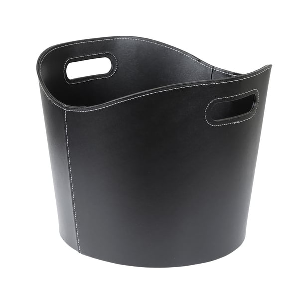Fåvne Vedkurv, rund, sort kunstlær