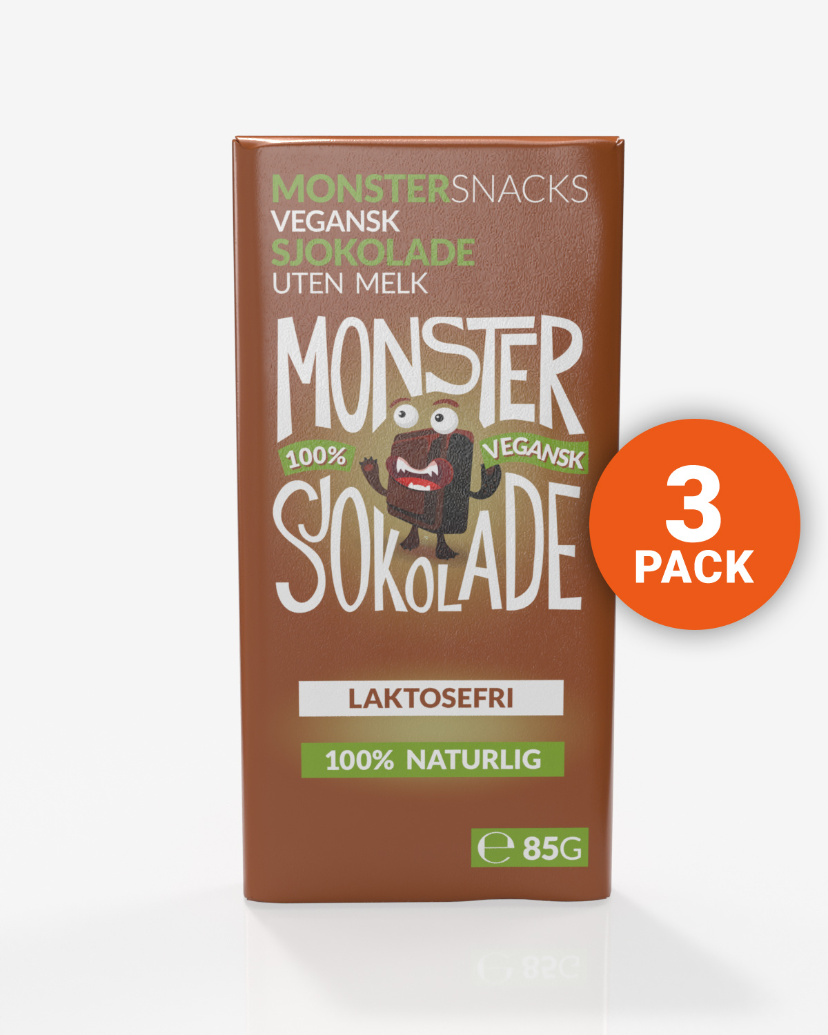 Monster Belgisk Vegansk Laktosefri Sjokolade 3x85g