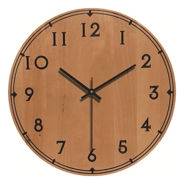 Analog veggklokke med svarte tall 30 cm - Tre