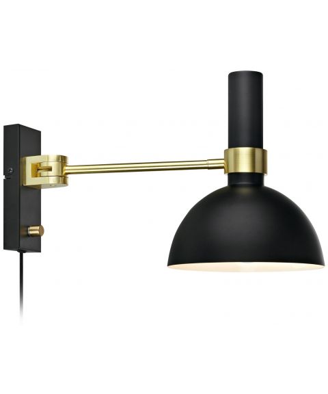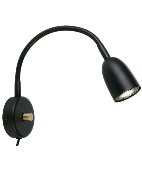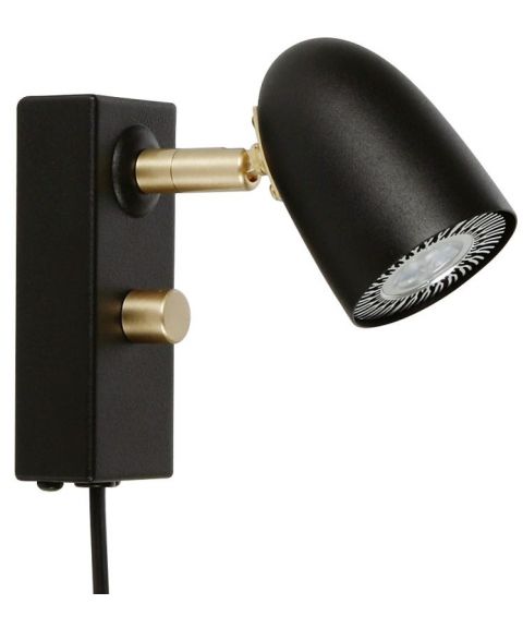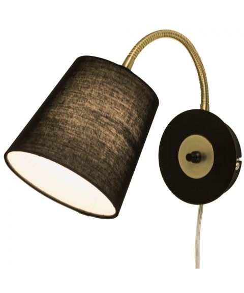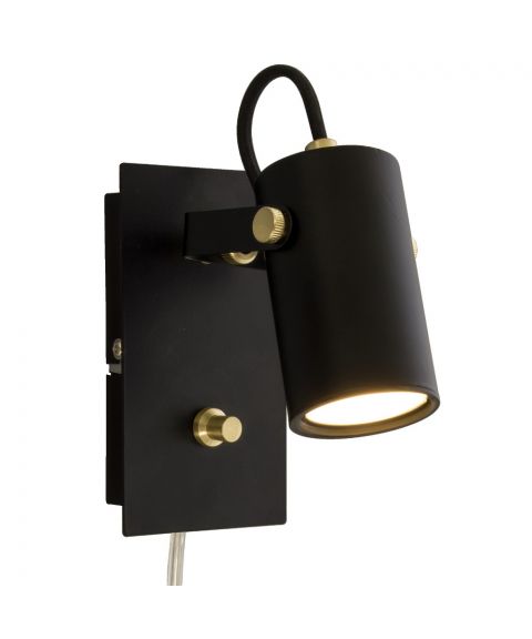 Ljusdal vegglampe med dimmer, Sort / Matt messing