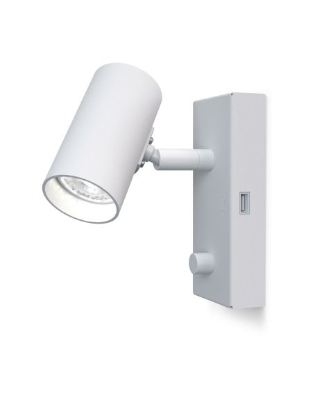 Logi vegglampe med hylle og USB, dimmer, Hvit