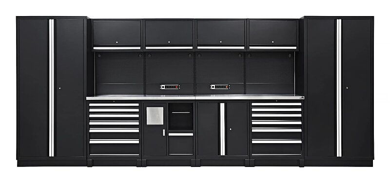 MSW Verktøyskap - modulært 132 x 42,7 2,5 cm topp perforert vegg 2 rullebeholdere låsbar