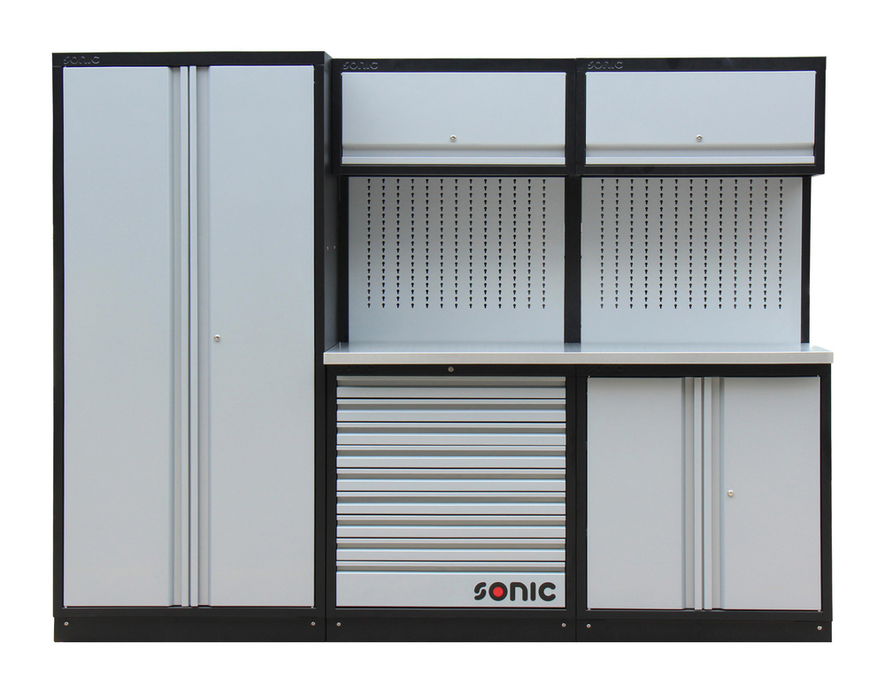 MSW Verktøyskap - pegboard bakpanel og svingdører 7 skuffer låsbar