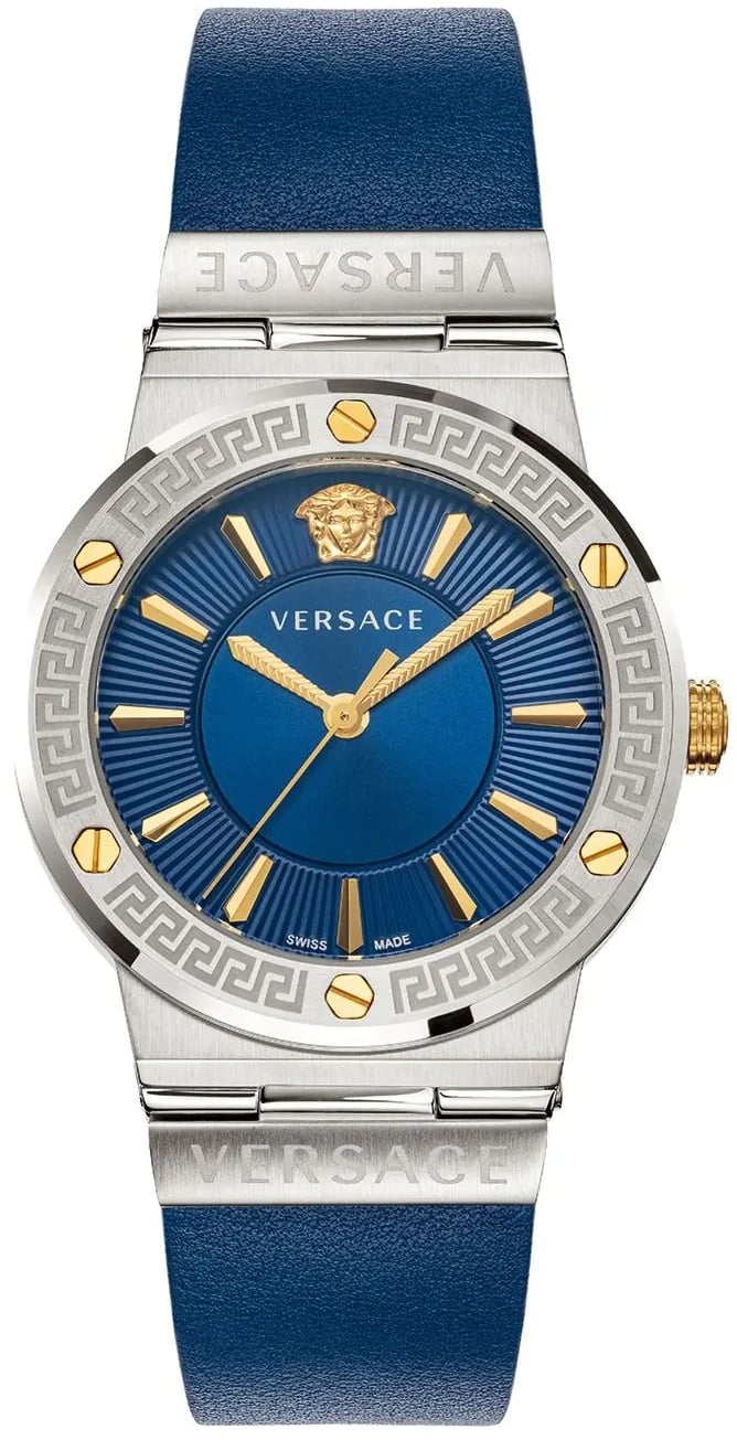 Versace Dameklokke VEVH00120 Greca Logo Blå/Lær Ø38 mm