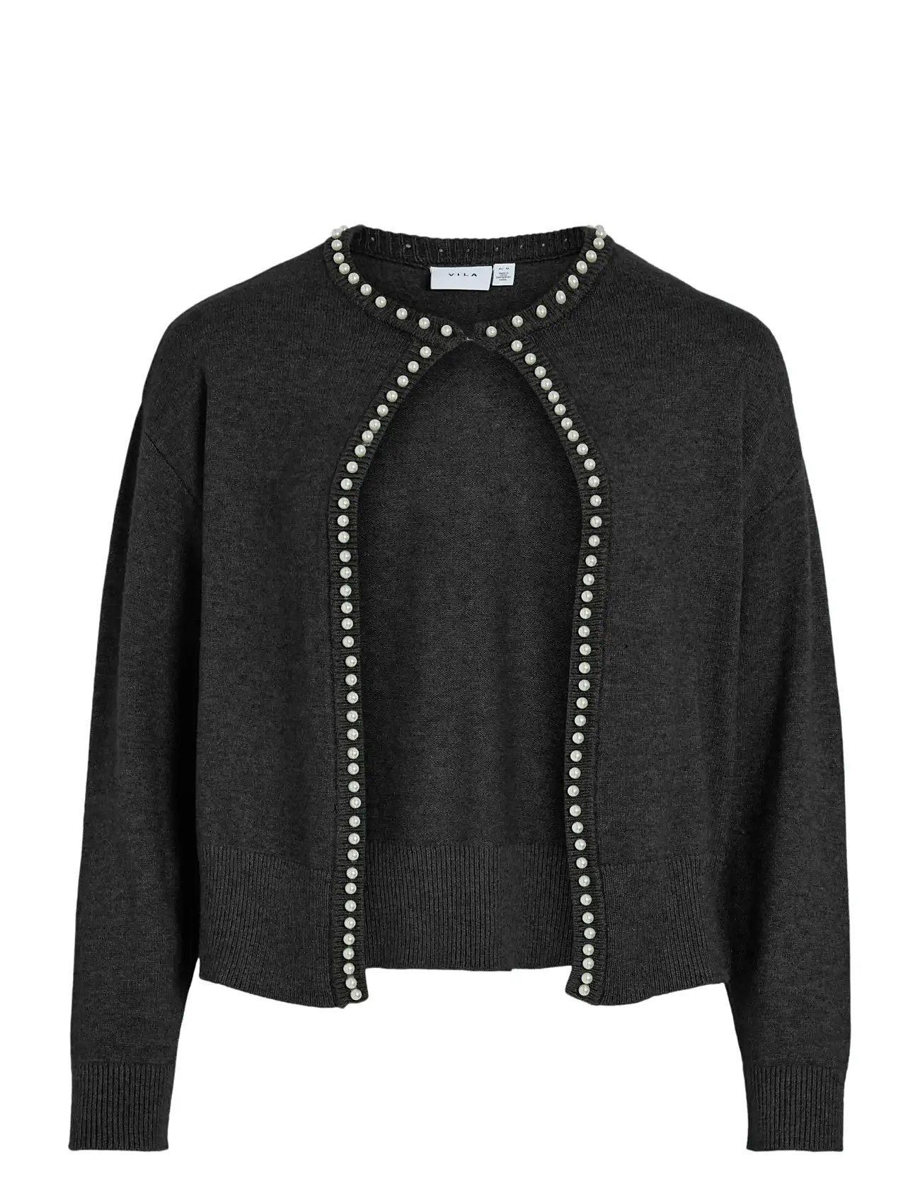 Vila Vizafina L/S O-Neck Pearl Knit Cardigan - Black - L