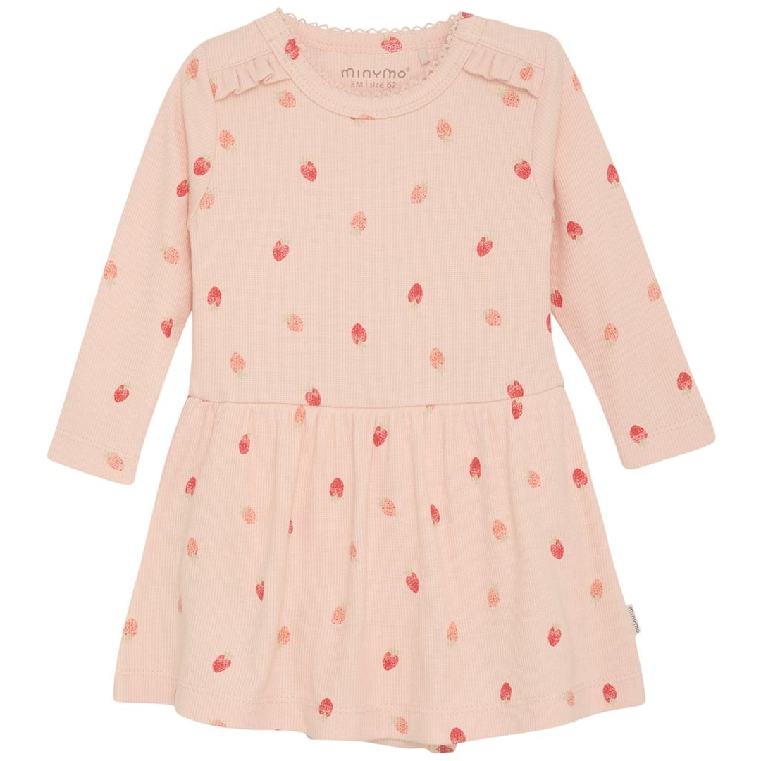 Minymo Mønstret Ribbet Bodykjole Spanish Villa 80 cm Rosa 80 cm kvinne