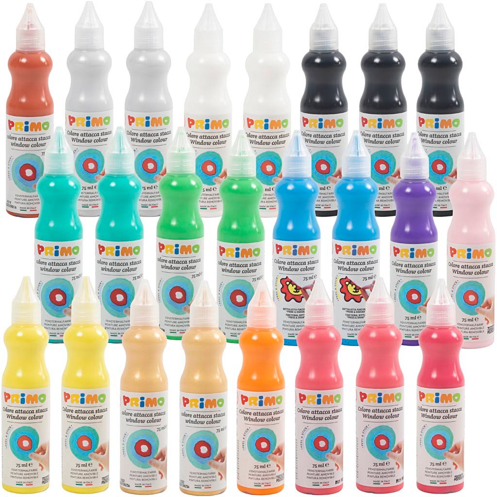 Vindusmaling, ass. farger, 24x75 ml/ 1 pk.