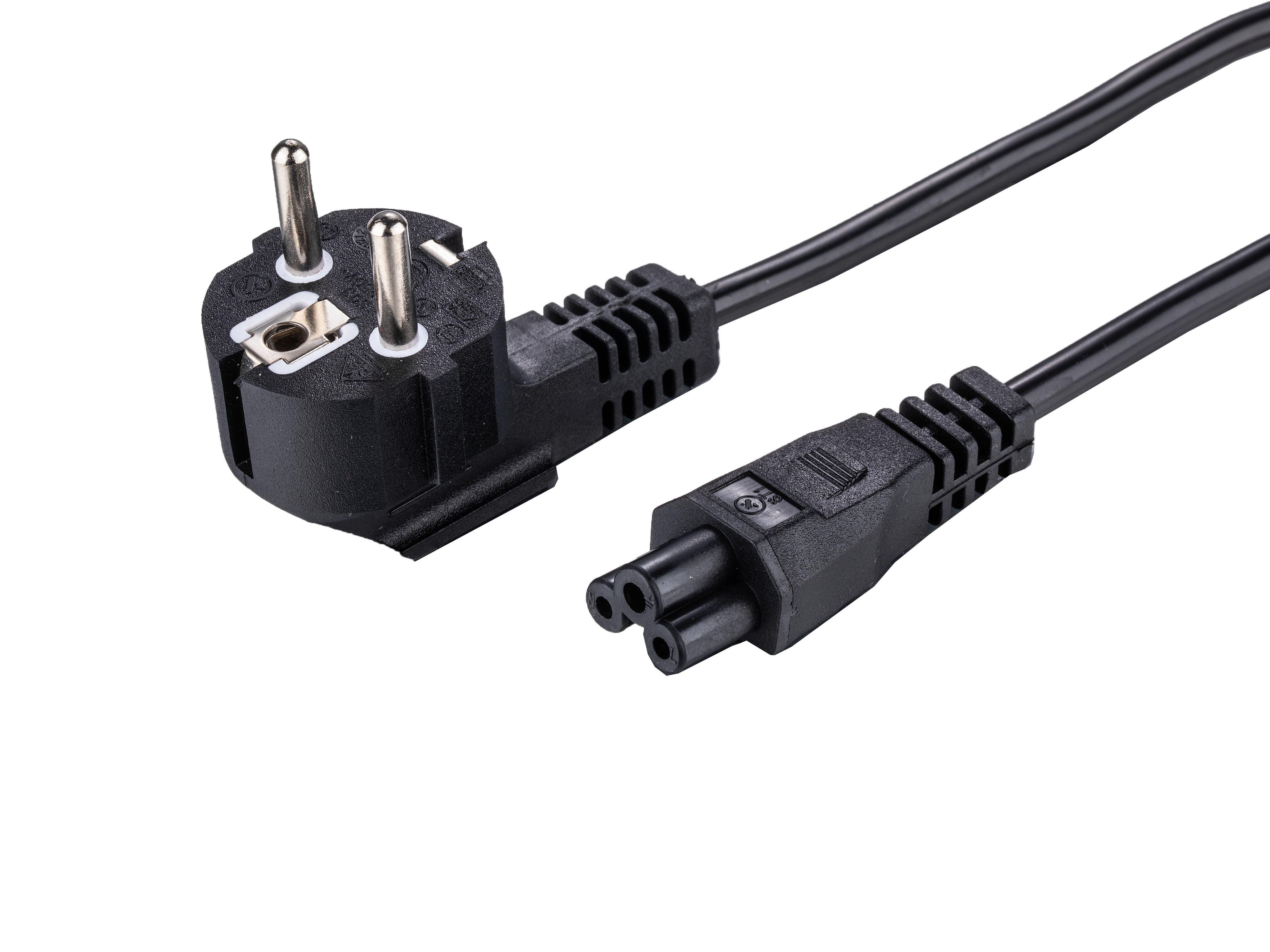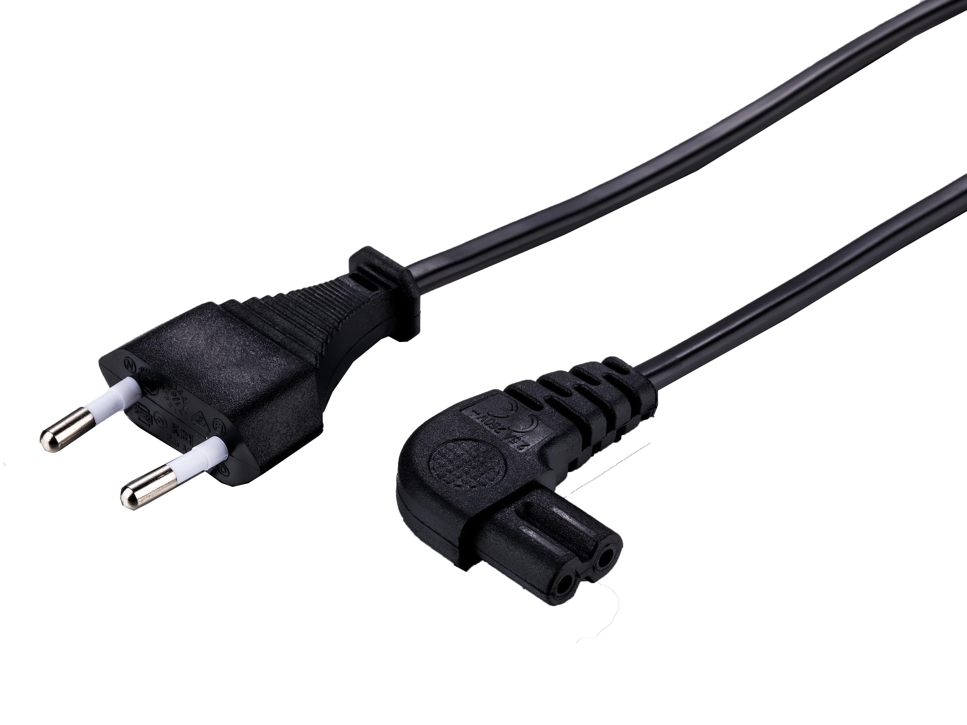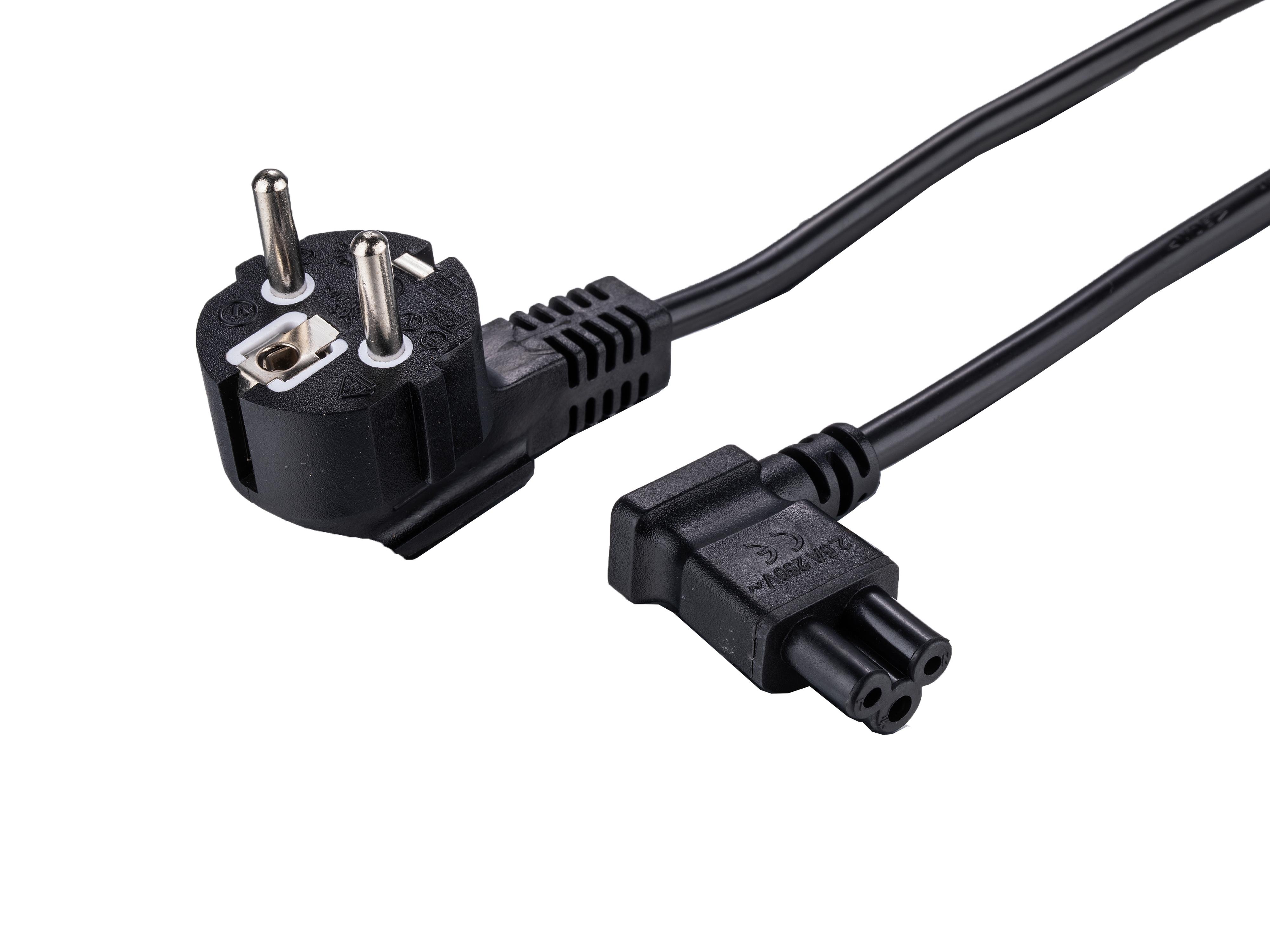 Strømkabel CEE 7/16 - C7, vinklet, 1,5m - Sort