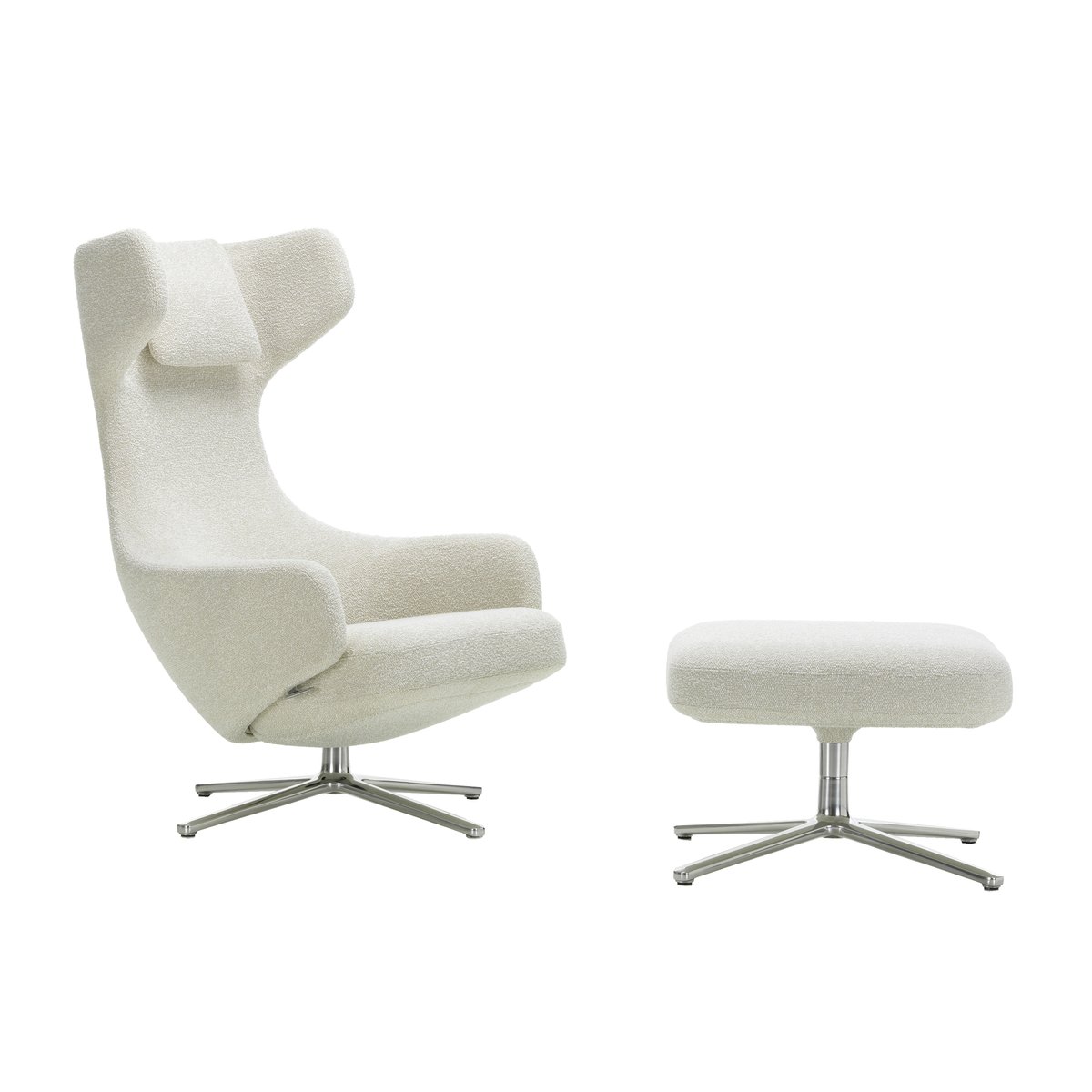 Vitra Grand Repos lenestol & Ottoman aluminiumstativ Nubia 01 ivory-pearl