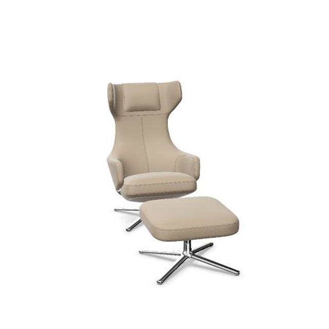 Vitra Grand Repos Lenestol med Fotskammel Mørk Sand/ Krom