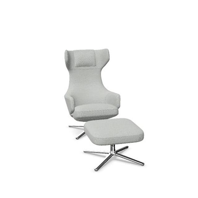Vitra Grand Repos Lenestol med Fotskammel Dumet Pebble Melange/ Krom