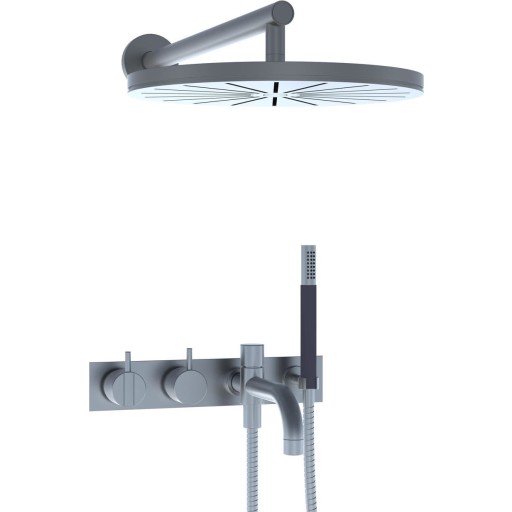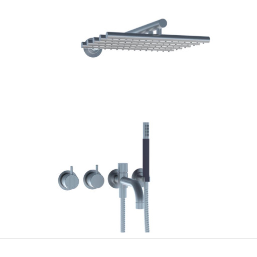 Vola 2441DT8-051 dusj og badekarbatteri, med hode- og hånddusj, børstet krom