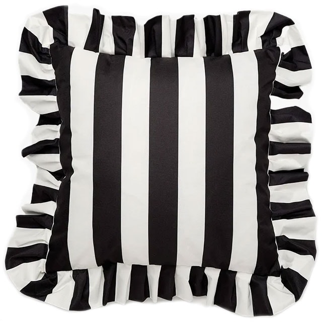 Pute Med Volang Utendørs 61x61 cm, Sort / Hvit