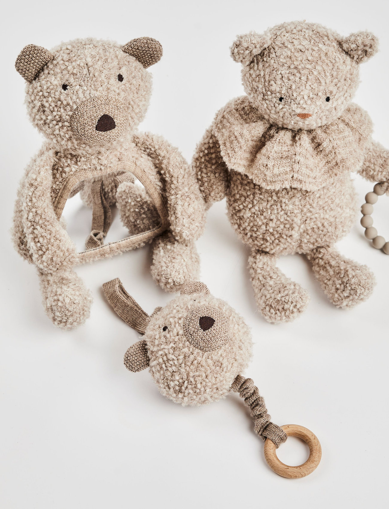 Smallstuff Activity Bear W. Mirror, Wool Bouclé, Grey - Grey - ONE SIZE